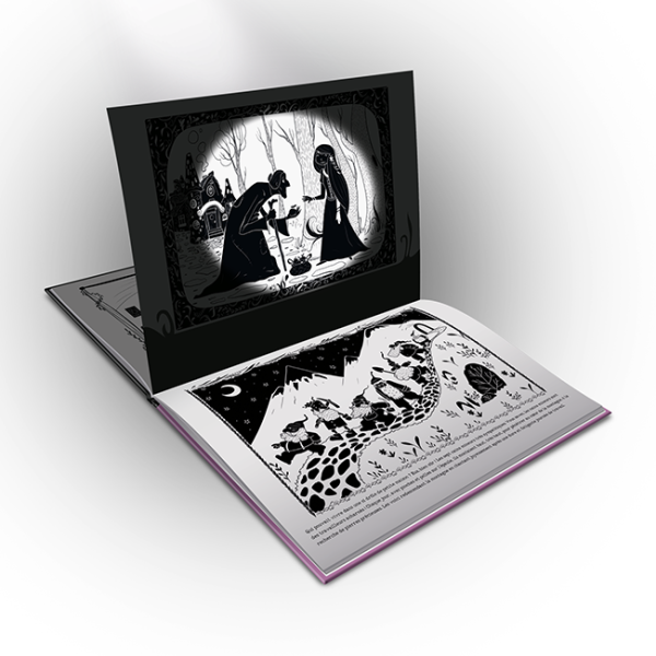 À l’intérieur du précieux coffret se trouvent un livre magique et une lampe de poche. Pour lire les contes dans le noir, il suffit d’éteindre la lumière, d’allumer la lampe et de se laisser emporter par la magie des ombres qui dansent sur les pages et racontent des histoires incroyables !